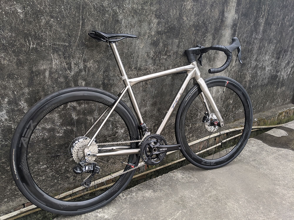 Ti-3Al-2.5V (Down Tube/Seat Tube/Right chainstay) Ti-6Al-4V (Custom) |